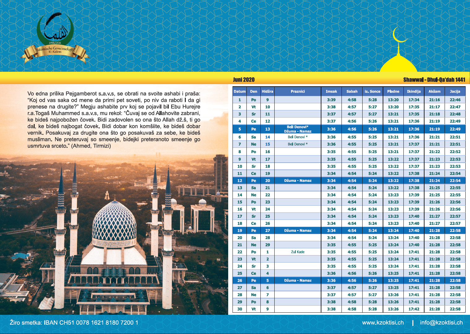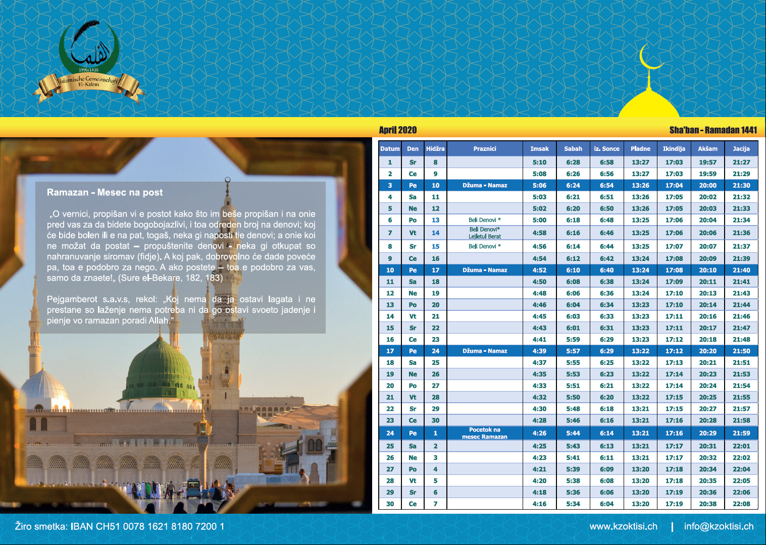 Na ova strana mozete da se informirate za vaktijata na dzematot. Isto taka tuka ke bidat objaveni eventualni promeni za vremeto za klananje.